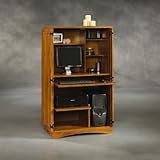 The clean, modern design of the Sauder Harvest Mill Computer Armoire - you won't know whether to work at it or just sit and admire it. The medium oak finish is worth admiring on its own. When not in use, doors conceal all your expensive equipment, wires, and sensitive work. Then they fully open to reveal a remarkable workspace: a keyboard and printer shelf slide out on metal hardware to create a full, convenient office in seconds. Two interior shelves adjust to fit your gear, and the included media rack holds up to 14 CDs. Since when has work been so good-looking? Additional Dimensions: Overall: 31.5W x 20.75D x 54.25H inches CPU shelf: 10.305W x 19.5D x 23H inches Weight: 122 pounds About SauderSauder is North America's leading producer of ready-to-assemble (RTA) furniture and the nation's fifth largest residential furniture manufacturer. Based in Archbold, Ohio, Sauder also sources furniture from a network of quality global partners, including a line of office chairs that complement its residential and light commercial office furniture. Sauder markets more than 30 distinct furniture collections in a full line of RTA furnishings for the home, entertainment, home office, bedroom, kitchen, and storage. Sauder is a privately held, third-generation, family-run business. The company prides itself on its awareness that all function and no fashion makes for a dull living space when it comes to home furnishing products. That's why Sauder's award-winning design team has produced more than 25 collections of stylish furniture that span the design spectrum. From minimalist modern or contemporary to classic 18th century or country styles, Sauder has what you're looking for. The company offers more than 500 items - most priced below 0 - that have won national design awards and generated thousands of letters of gratitude from satisfied consumers.